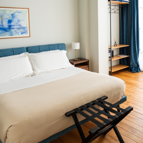 Camera singola con letto matrimoniale alla francese, raggiungibile in ascensore al primo piano.