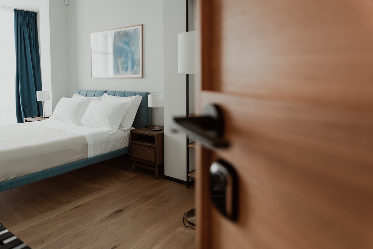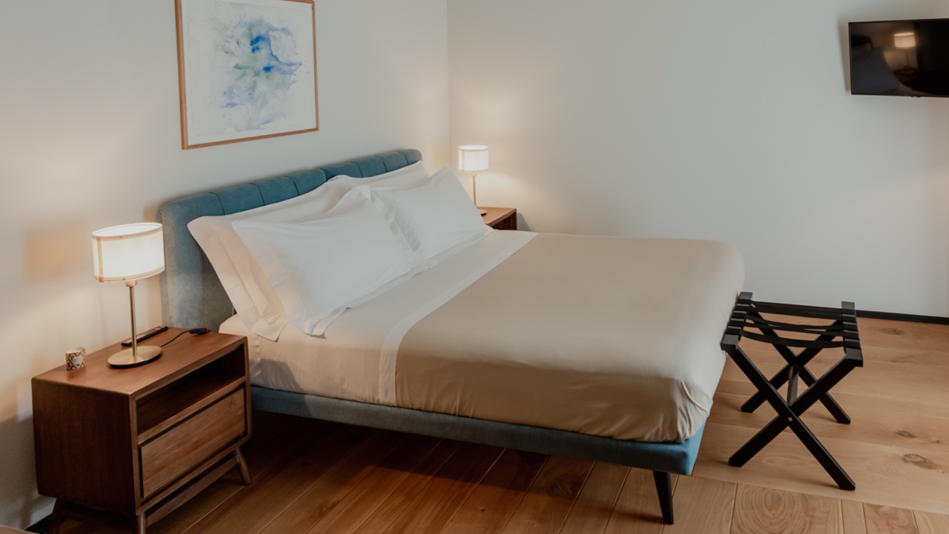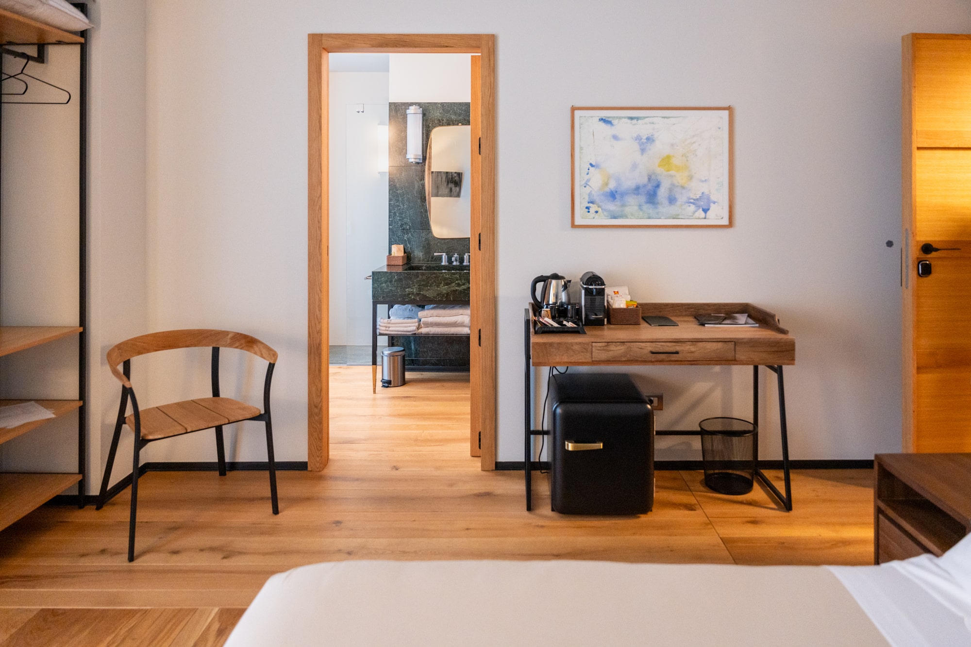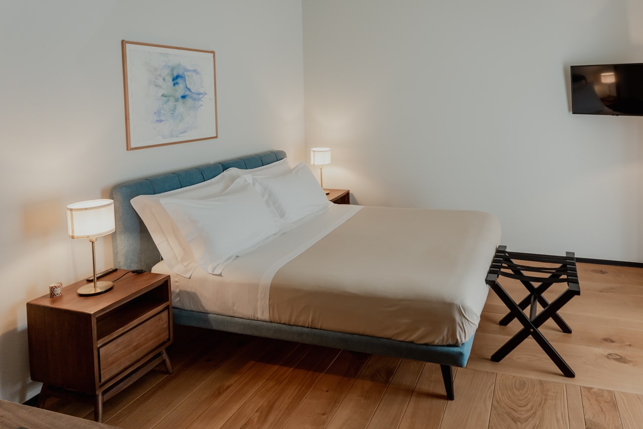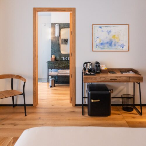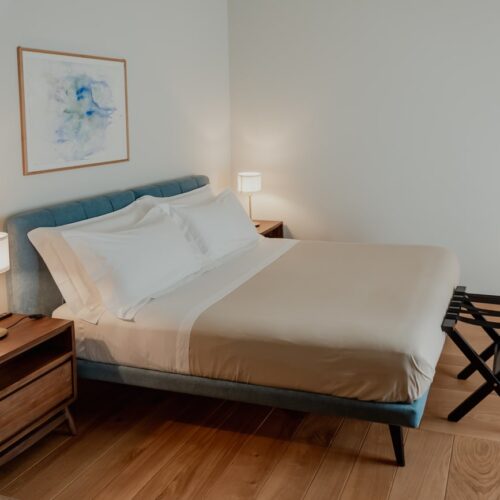 Camera doppia con letto matrimoniale e balcone, raggiungibile in ascensore al secondo piano. Bagno privato con doccia, biancheria, set cortesia e asciugacapelli. La camera, climatizzata e insonorizzata è dotata di scrittoio, connessione WiFi, TV 32”, bollitore, macchina da caffè Nespresso, mini bar.